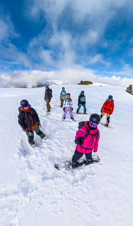 To enable to crew to easily access additional freeride areas all participants should have their own or hired for the start of the course some suitable avalanche equipment, a pair of snow shoes or a splitboard. We can advise and help with this process as we do hold limited hire options for avalanche equipment and snow shoes.